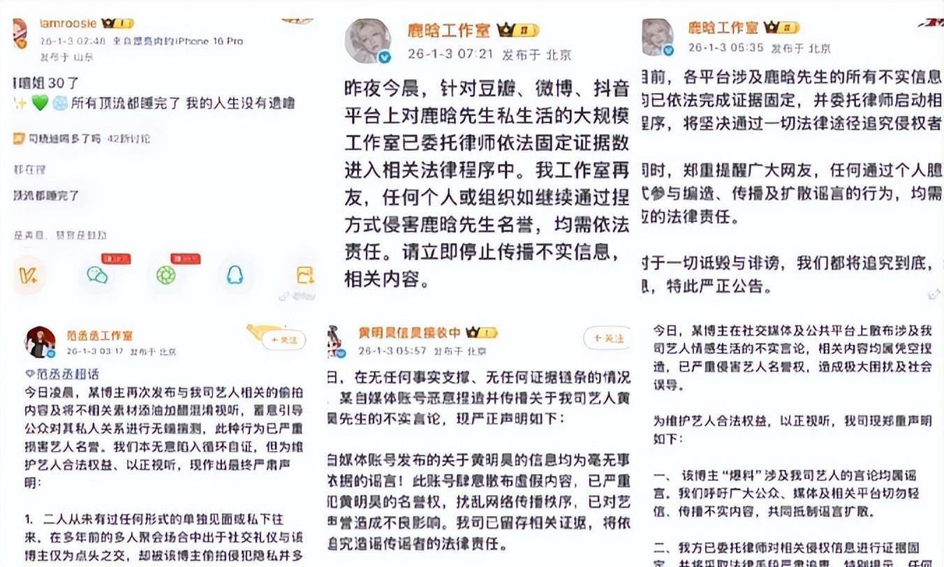 2026年开年的娱乐圈,被一个叫司晓迪的网红搅得天翻地覆。她先是在社交平台连续爆料,声称与鹿晗、范丞丞、林更新等多位顶流男星有亲密关系,还晒出聊天截图和模糊照片,瞬间引爆全网。可就在舆论达到顶峰时,她却突然删除所有爆料内容,只留下一句“新的一年我要好好爱自己”。更戏剧性的是,她的老板王大发紧接着现身,不仅甩出民事诉讼索万,还爆出司晓迪伪造白富美人设、借钱买精神药物、向男星卖惨等内幕,让整个事件反转再反转。